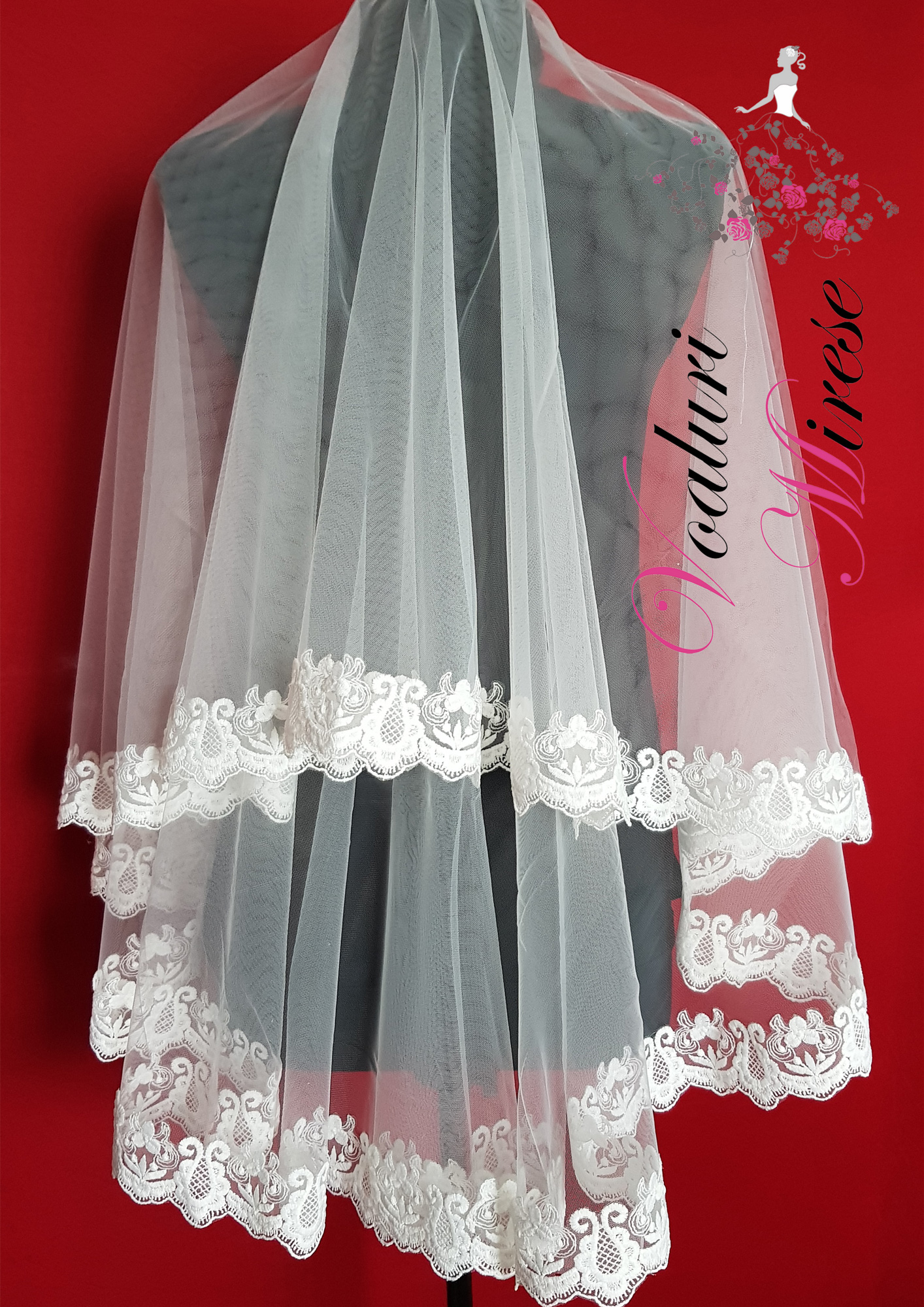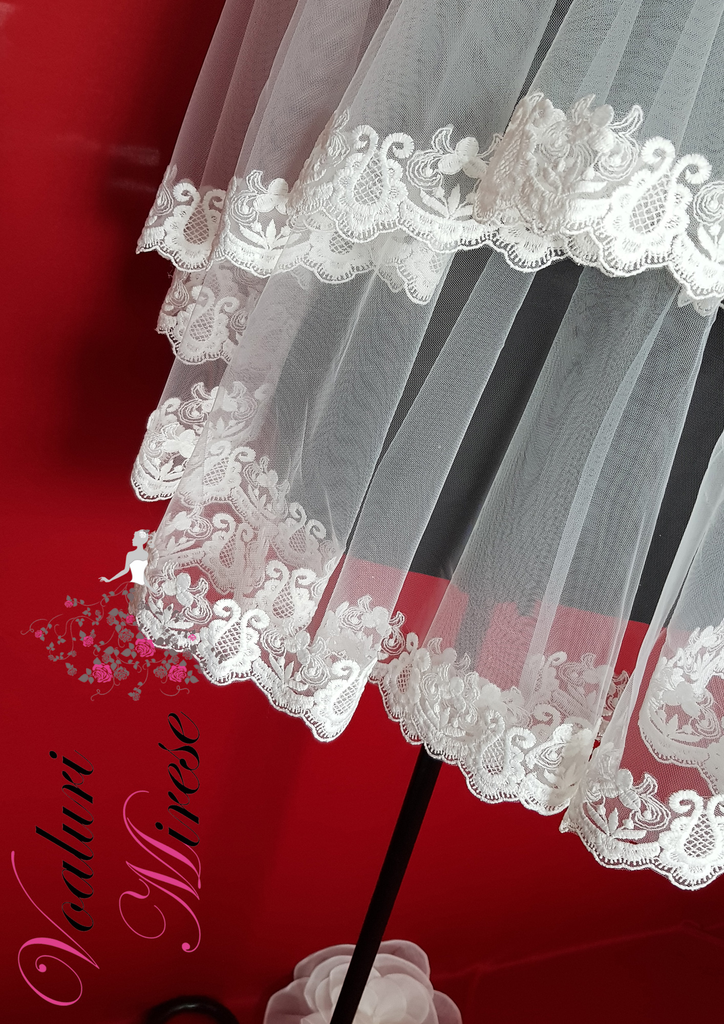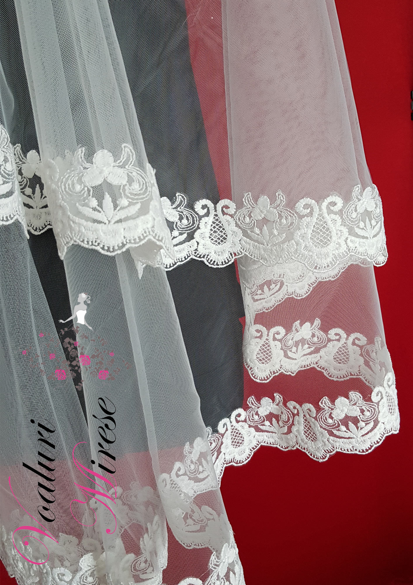 Dantela de pe acest voal este mai plina, fara paiete sau alte accesorii stralucitoare… stil bumbac.